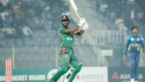 পাওয়ার প্লে তে বাংলাদেশের সংগ্রহ ৪৩। নাজমুল শান্ত যেন কোন ভাবেই ফর খুঁজে পাচ্ছেন না তিনি ২২ বলে করেন ২০ রান। ২০২২ সালের পর আজি প্রথম টি-টোয়েন্টি খেলতে নেমে মাহমুদুল্লাহ দেখালেন এক বিশাল আলোর ঝলক। হেরে যাওয়া ম্যাচটা প্রায় ঘুরিয়ে ফেলছিলেন তিনি কিন্তু শেষ পর্যন্ত ৩১বলে ৫৪রানে থামে মাহমুদুল্লাহর টর্নেডো ইনিংস। এই ইনিংসে মাহমুদুল্লাহর ব্যাটে ছিল দুই চার চারটি ছয়।
