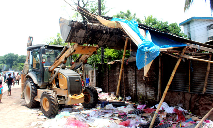 টাঙ্গাইল শহরের নতুন বাস টার্মিনাল এলাকায় অবৈধ স্থাপনা উচ্ছেদ অভিযান